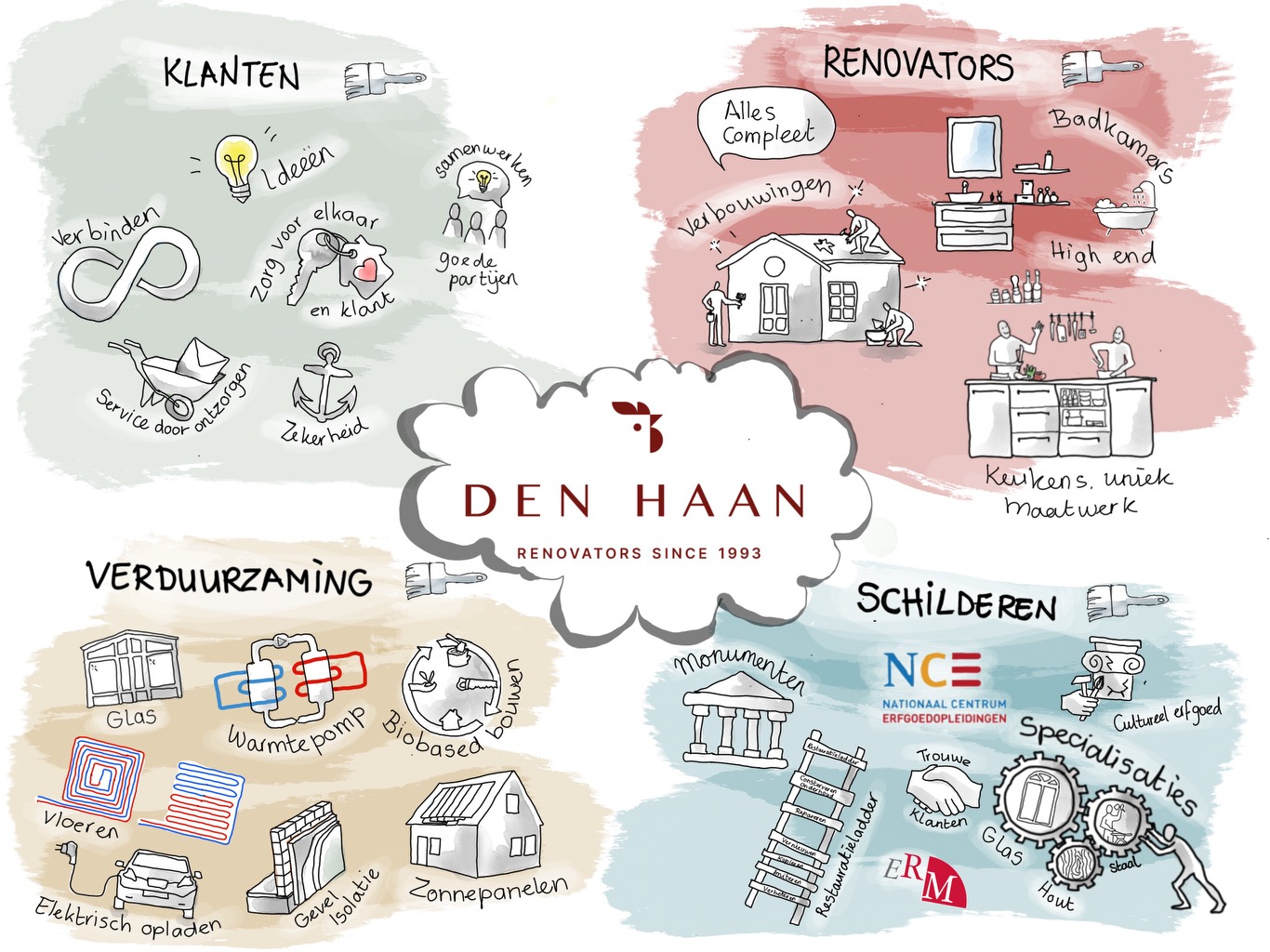 Den Haan staat voor uitstekend schilderwerk. De oprichters van Den Haan renovators (voorheen Den Haan schilders) hebben beiden opleiding tot schilder afgerond en zijn decennia werkzaam geweest als schilder, of in het schildersbedrijf.